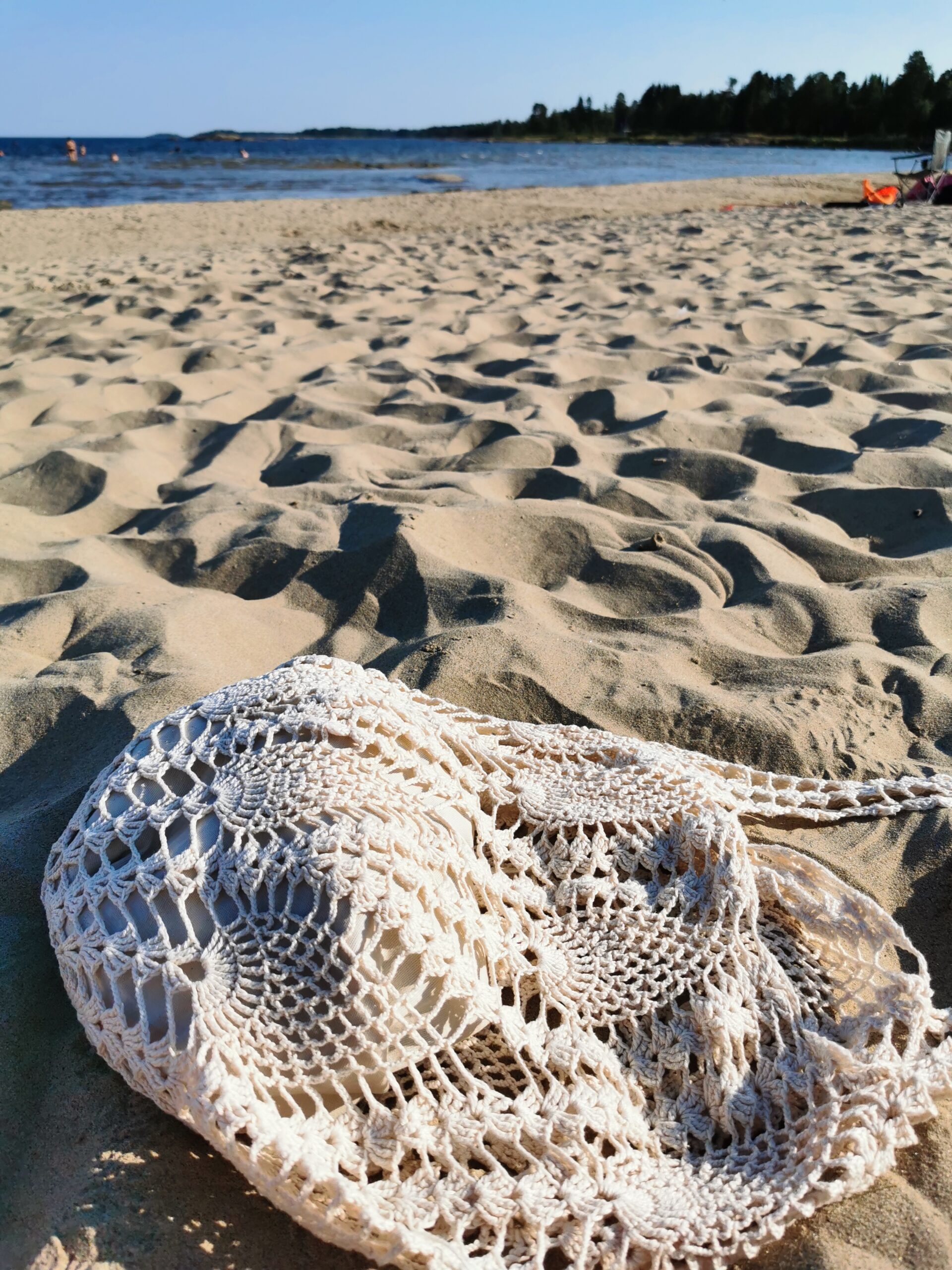 I crocheted a beautiful pattern years earlier; this one has made it to the beach.