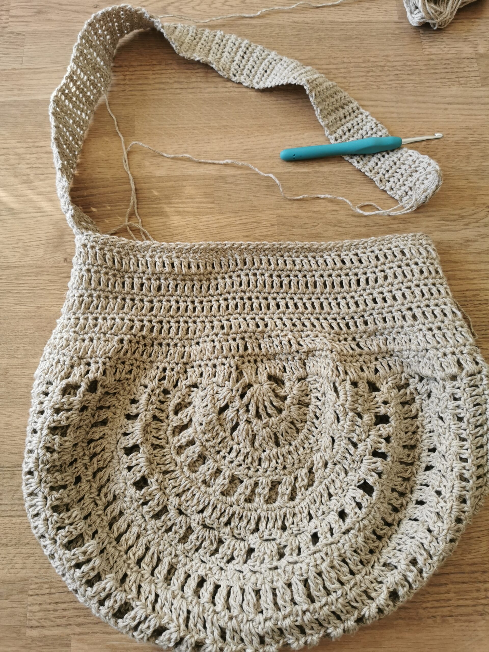 I managed to make these two bags this summer. I’m thinking of lining them so that the bits and pieces I carry don’t get too mixed up in them. I use the crochet bags when it is warm outside and I go cycling or go for a walk, and my usual handbag just feels out of place to take with me.